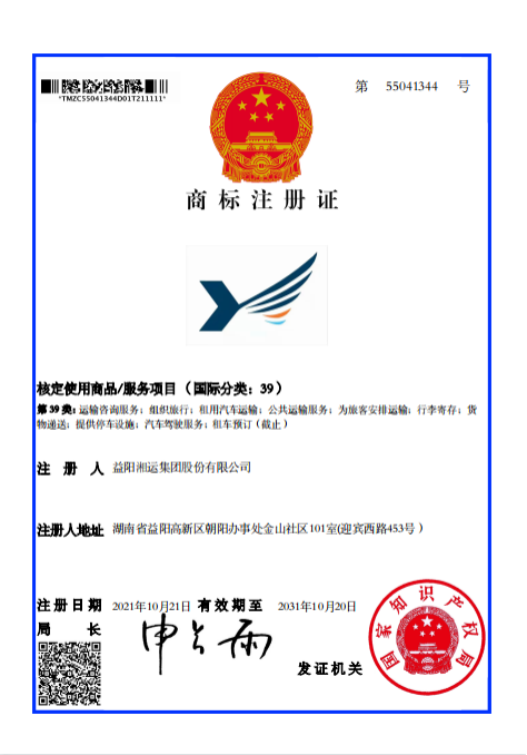 “益陽(yáng)湘運(yùn)”企業(yè)圖形正式獲國(guó)家商標(biāo)注冊(cè)證