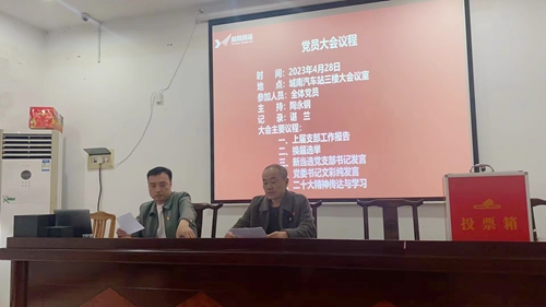 4月28日下午,安化運(yùn)輸分公司黨支部換屆大會(huì)在城南汽車站三樓會(huì)議室隆重舉行。公司黨委書記文彩純蒞臨現(xiàn)場(chǎng)指導(dǎo)并講話。