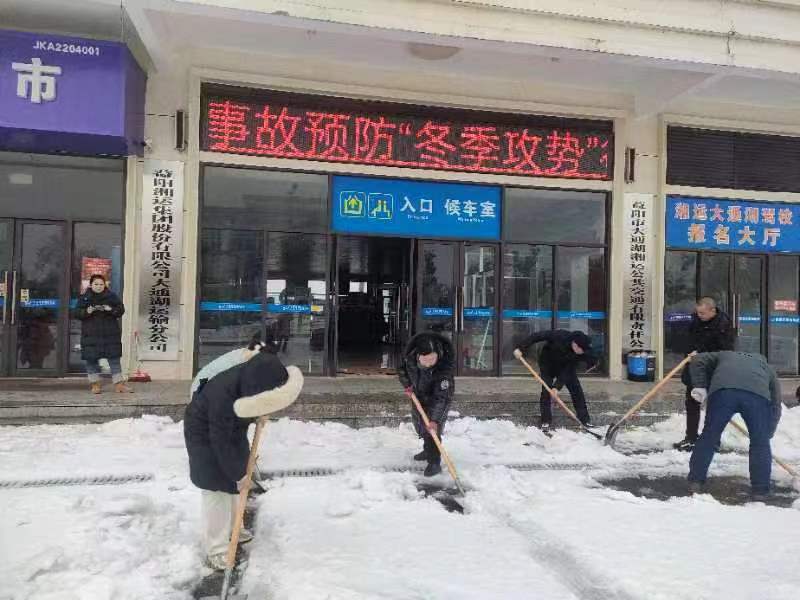 為保群眾出行安全,大通湖運輸分公司客運車輛已停運,但為方便上門問詢的乘客,公司黨支部書記、經理毛斌帶領公司上下,拿著鐵锨、雪鏟、掃帚齊心協(xié)力清掃站前、站坪、進出口等處積雪,大家不畏寒冷,干勁十足,經過一個多小時努力,為旅客鏟出了一條便捷安全的道路,充分發(fā)揮著基層黨組織黨員模范作用,推動主題教育落到實處。 (吳 輝)
